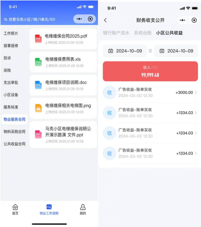 据悉,“马克透明小区”服务平台成功打通银行流水账户通道,业主只需通过小程序即可一站式查阅小区财务支出明细、公共收益、年度预算、服务标准合同、维修基金使用及缴费情况等关键信息,真正实现小区治理全流程可视化、可追溯。